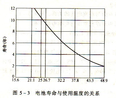 由圖5—3可見,溫度對電池的自然老化過程有很大影響。溫度上升,電池壽命下降。