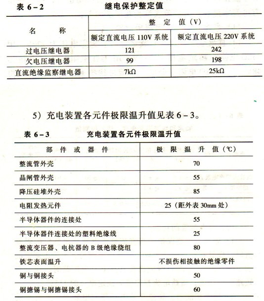 4)充電裝置的保護及聲光報警功能。充電裝置應具有過流、過壓、欠壓、絕緣監察、交流失壓、交流缺相等保護及聲光報警的功能。繼電保護整定值見表6-2